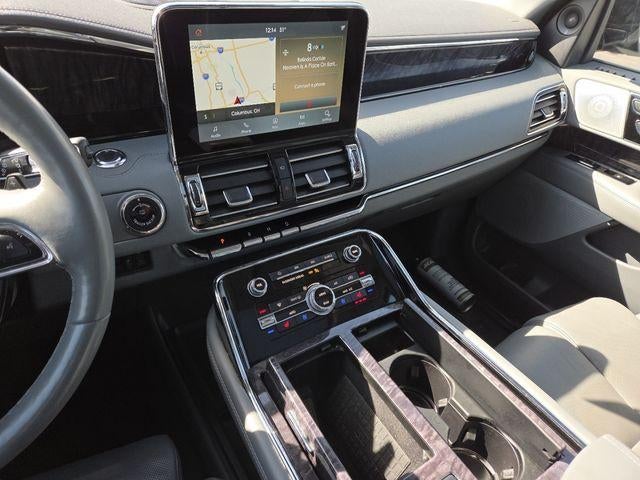The interior of this Navigator is a true haven of comfort and convenience. Premium leather-appointed seats provide unparalleled support and luxury, while the heated and ventilated front seats and heated rear seats ensure everyone on board can relax in absolute comfort. The expansive Panoramic Vista Roof floods the cabin with natural light, creating an airy and inviting atmosphere.