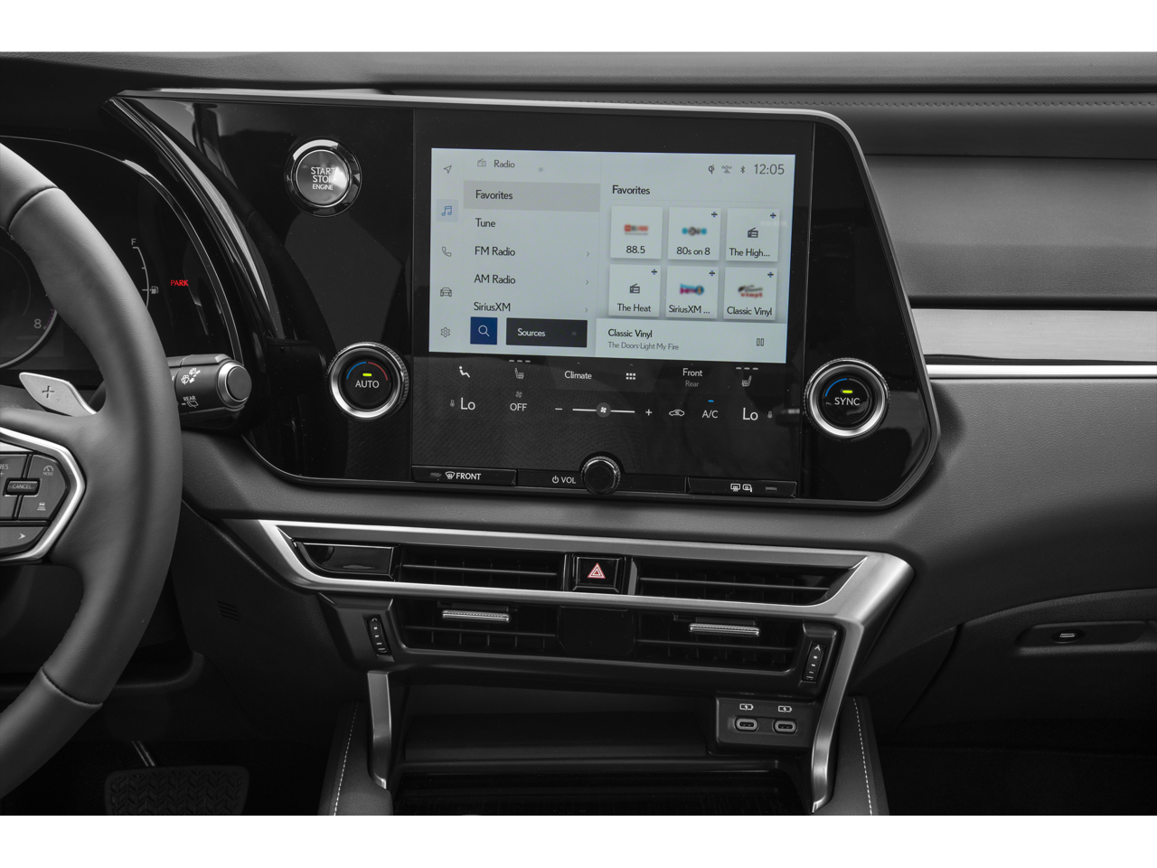 - Steering wheel material: Leather and genuine wood steering wheel
